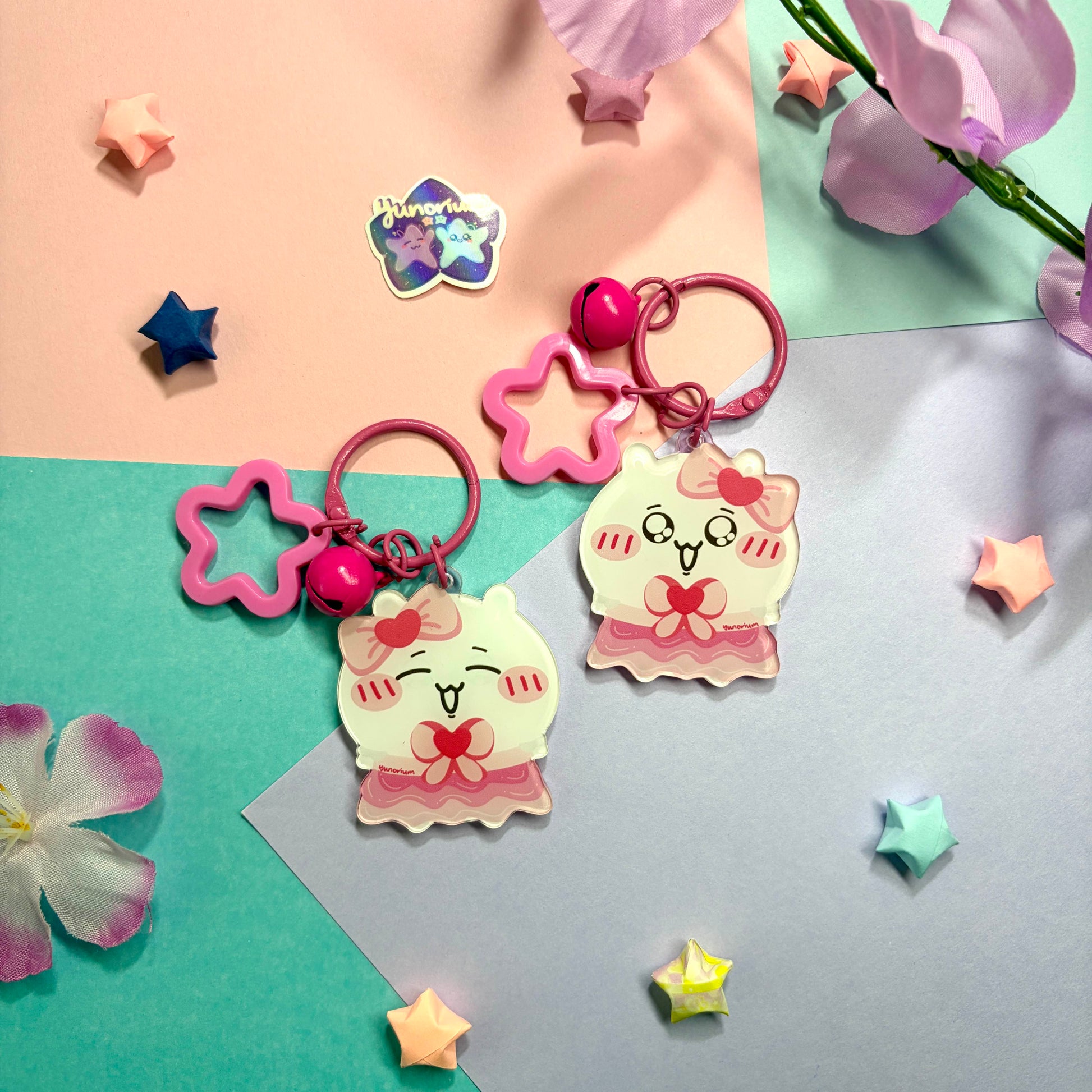 Saving the world with magical girl cuteness! These Chiikawa trinket keychains are inspired by the magical girl theme. Each keychain features a double-sided Chiikawa character, a keyring, a small bell, a star keychain, and mini rings for you to add more keychains!