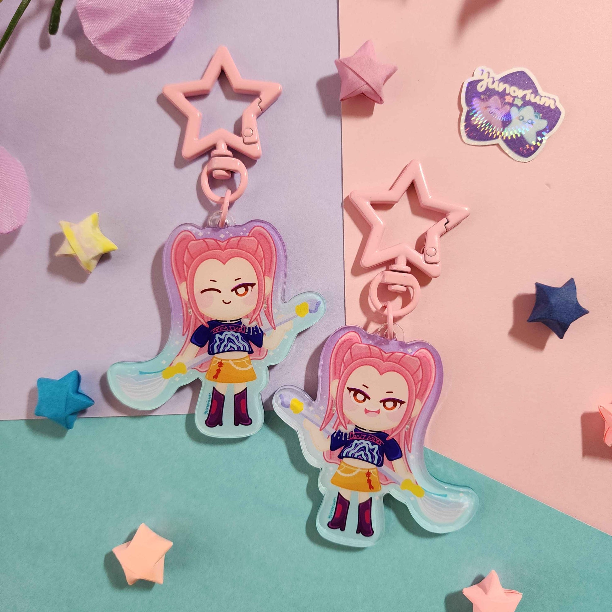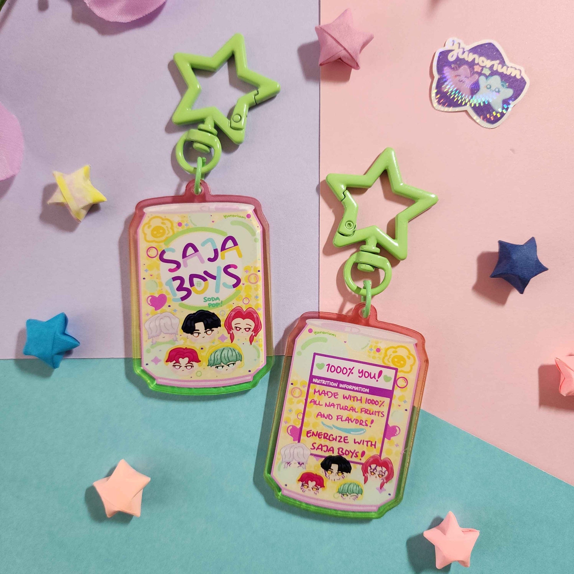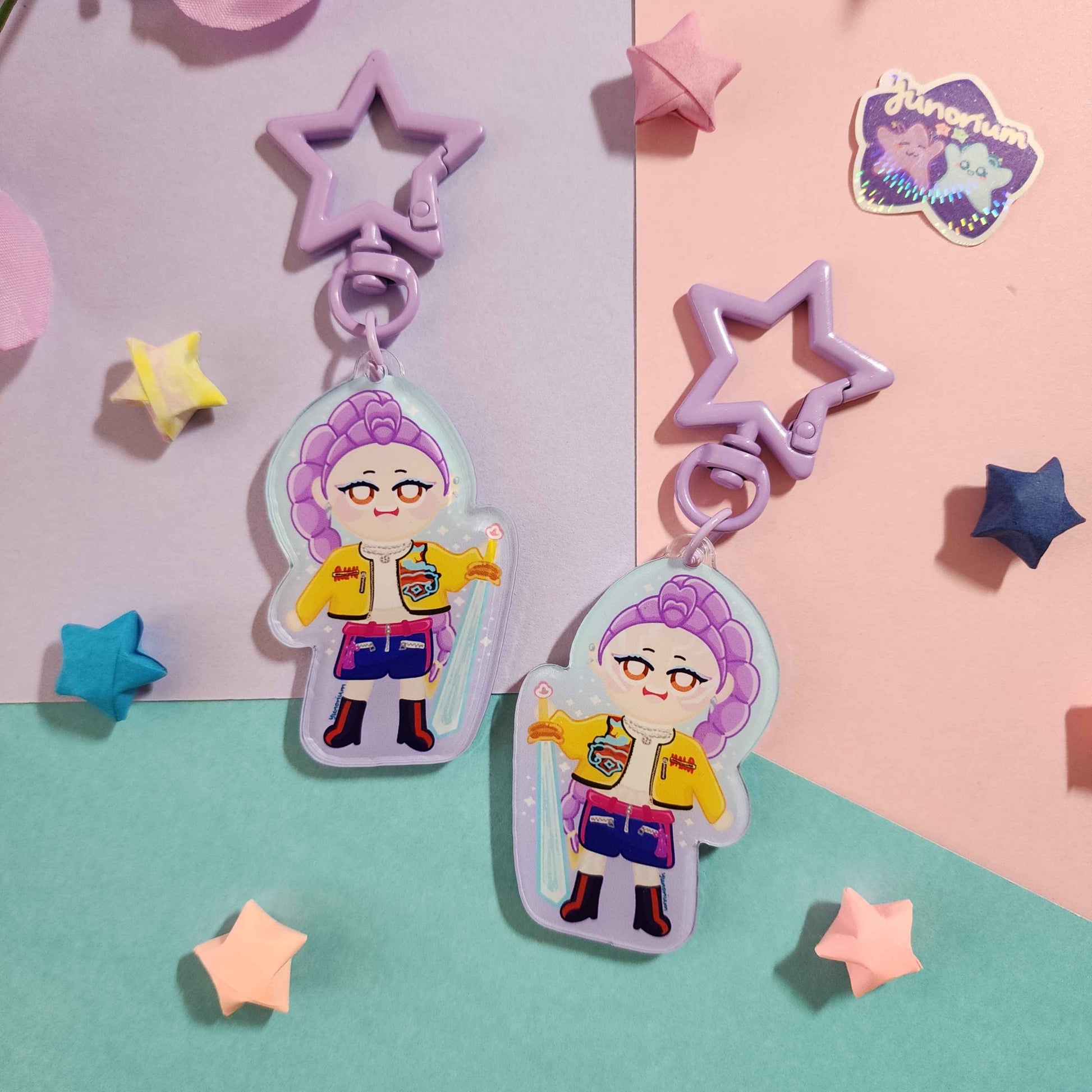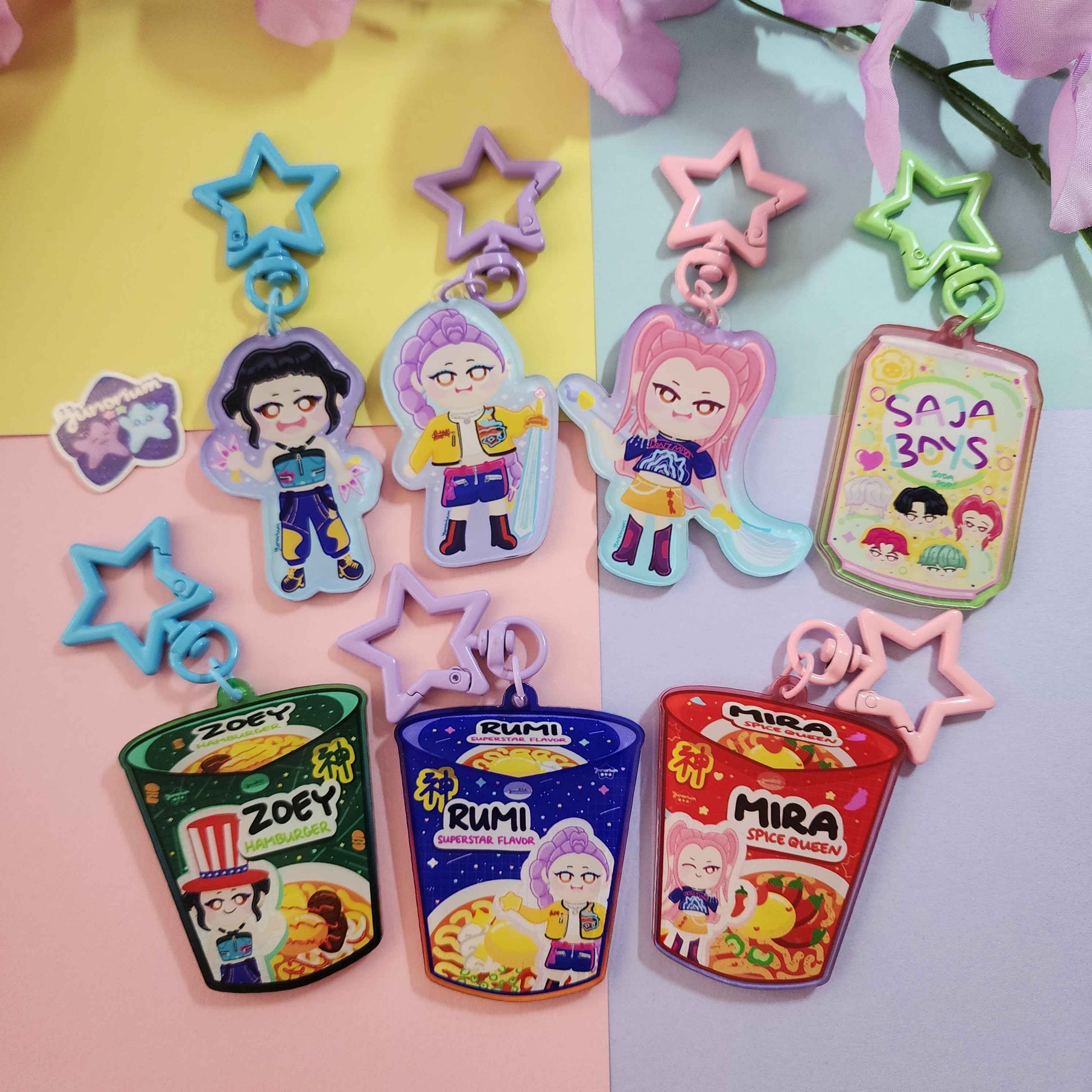 Our Kpop Demon Hunters keychains feature members of Huntrix and Saja Boys! All keychains are double sided.