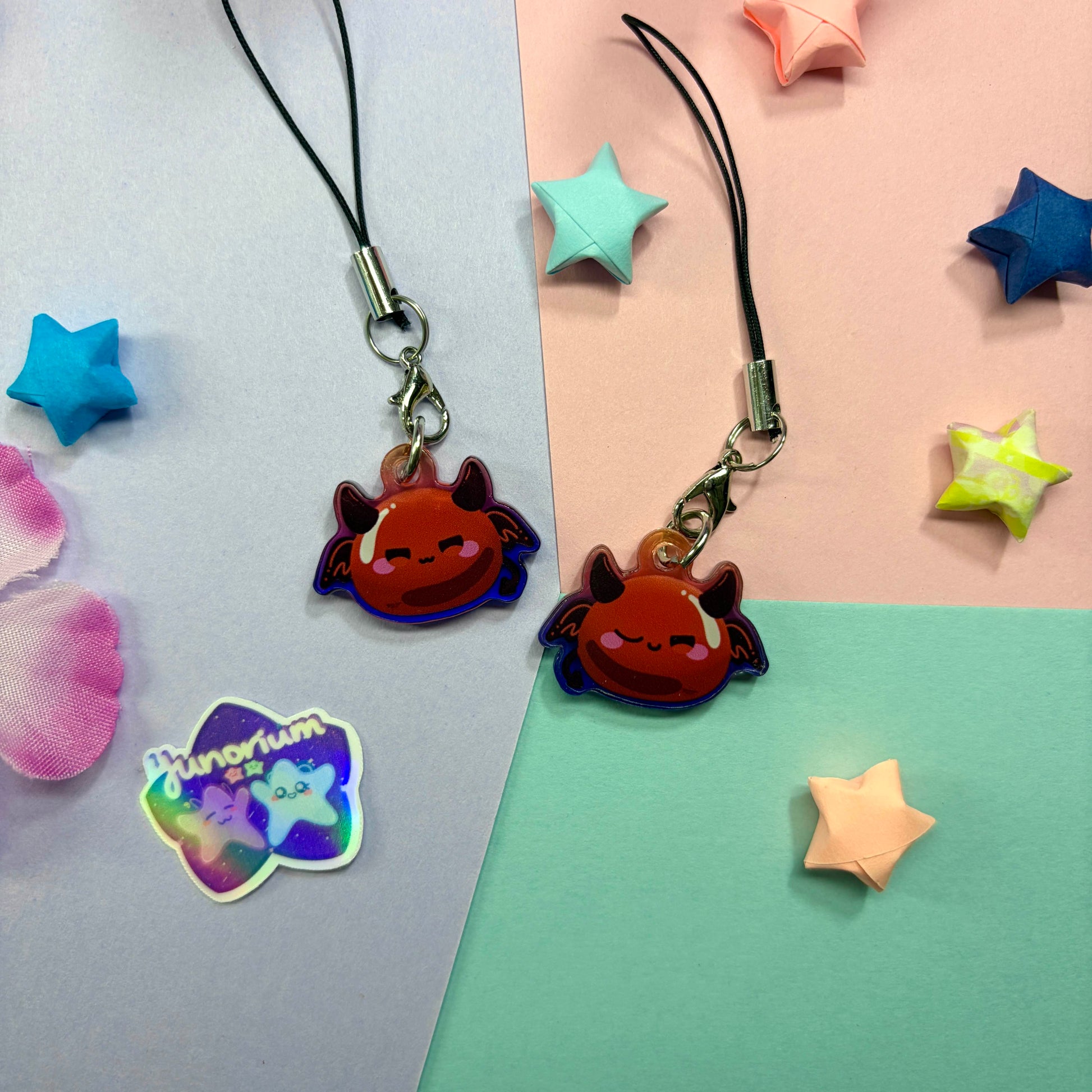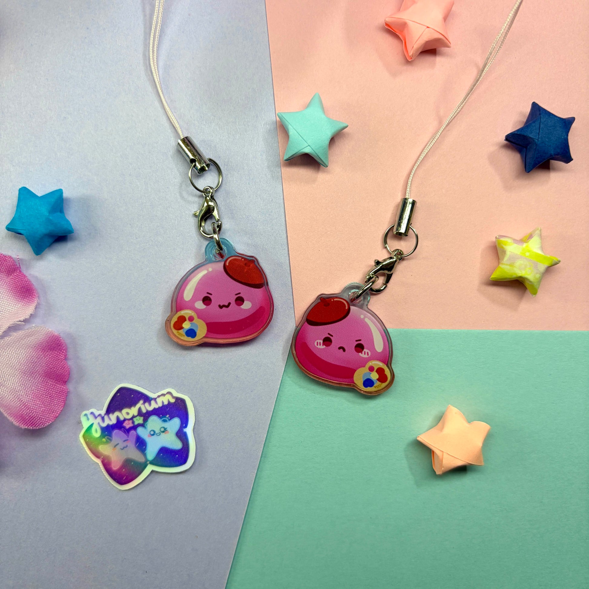 - Double-sided acrylic phone charm with different expressions